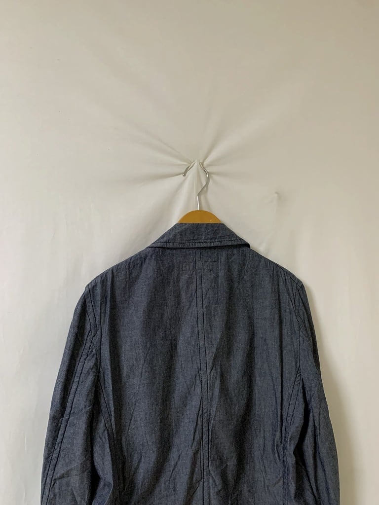 落ち着いたフォグブルーカラーのシャンブレーファブリック