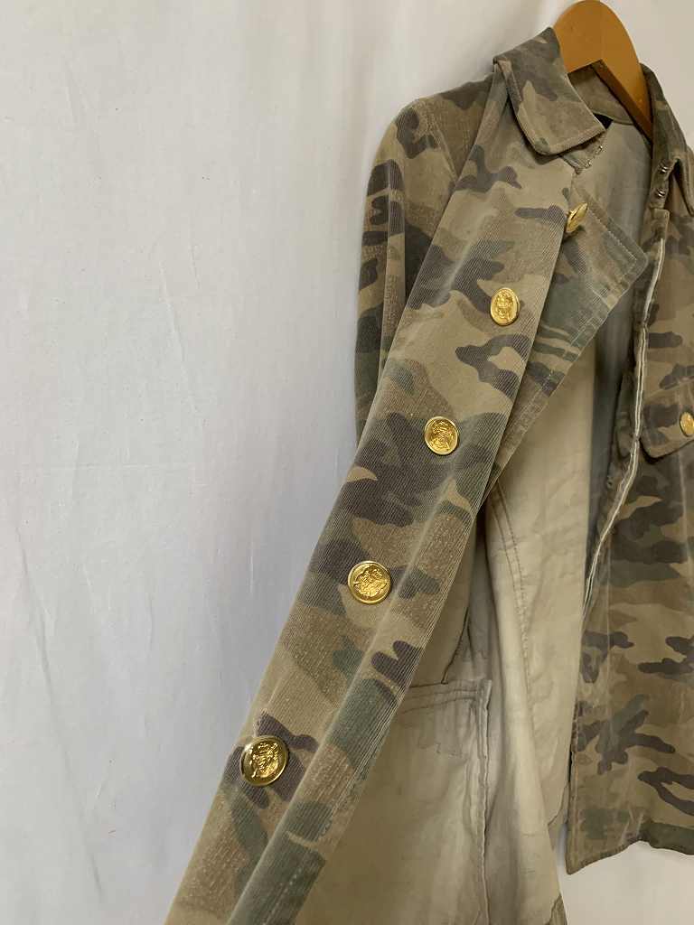 全体にこの素材特有の擦れ感、フロントの一番下のボタン部分にリペア跡がございますが、あまり目立つものではない為、通常使用に問題はないかと思われます