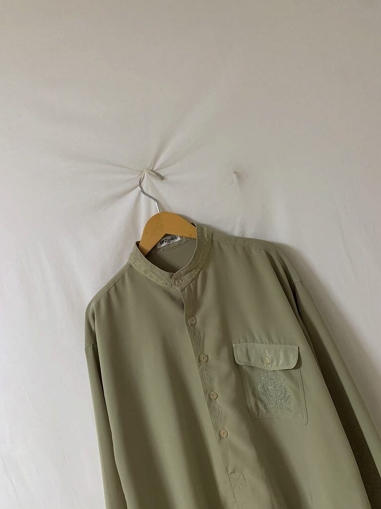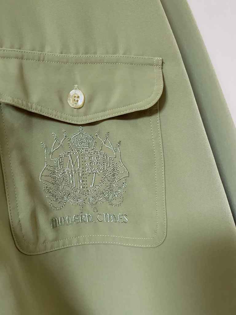 ネック周りやフロント、胸ポケットの同色の刺繍