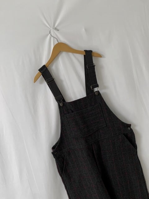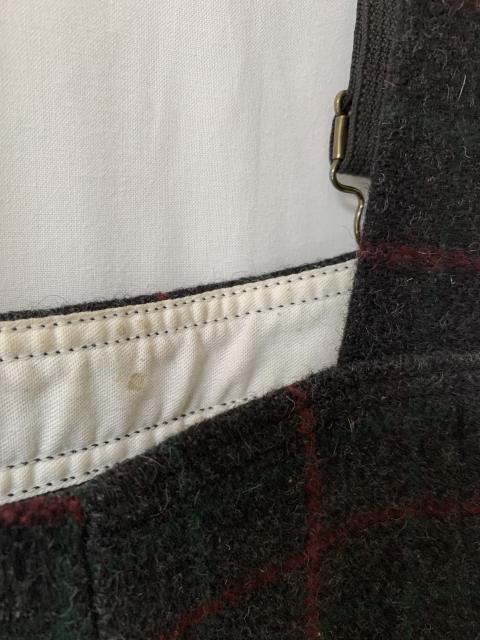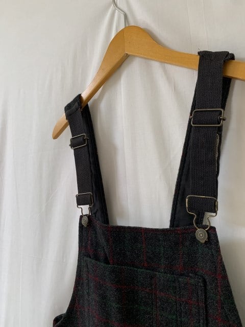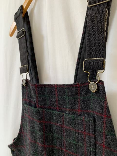 肩ヒモ部分のゴムに多少の伸び、胸当ての内側に汚れがございますが、実際の着用に問題はないかと思われます