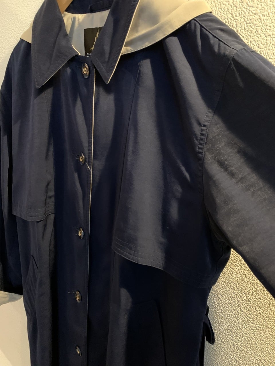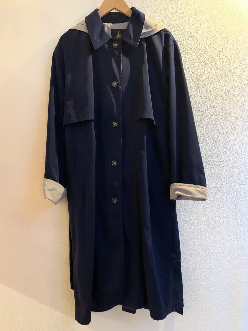 ネイビーカラーのロングコート