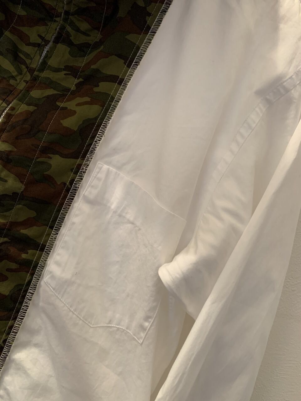 ホワイトカラーと対照的なカモフラパターンのファブリック
