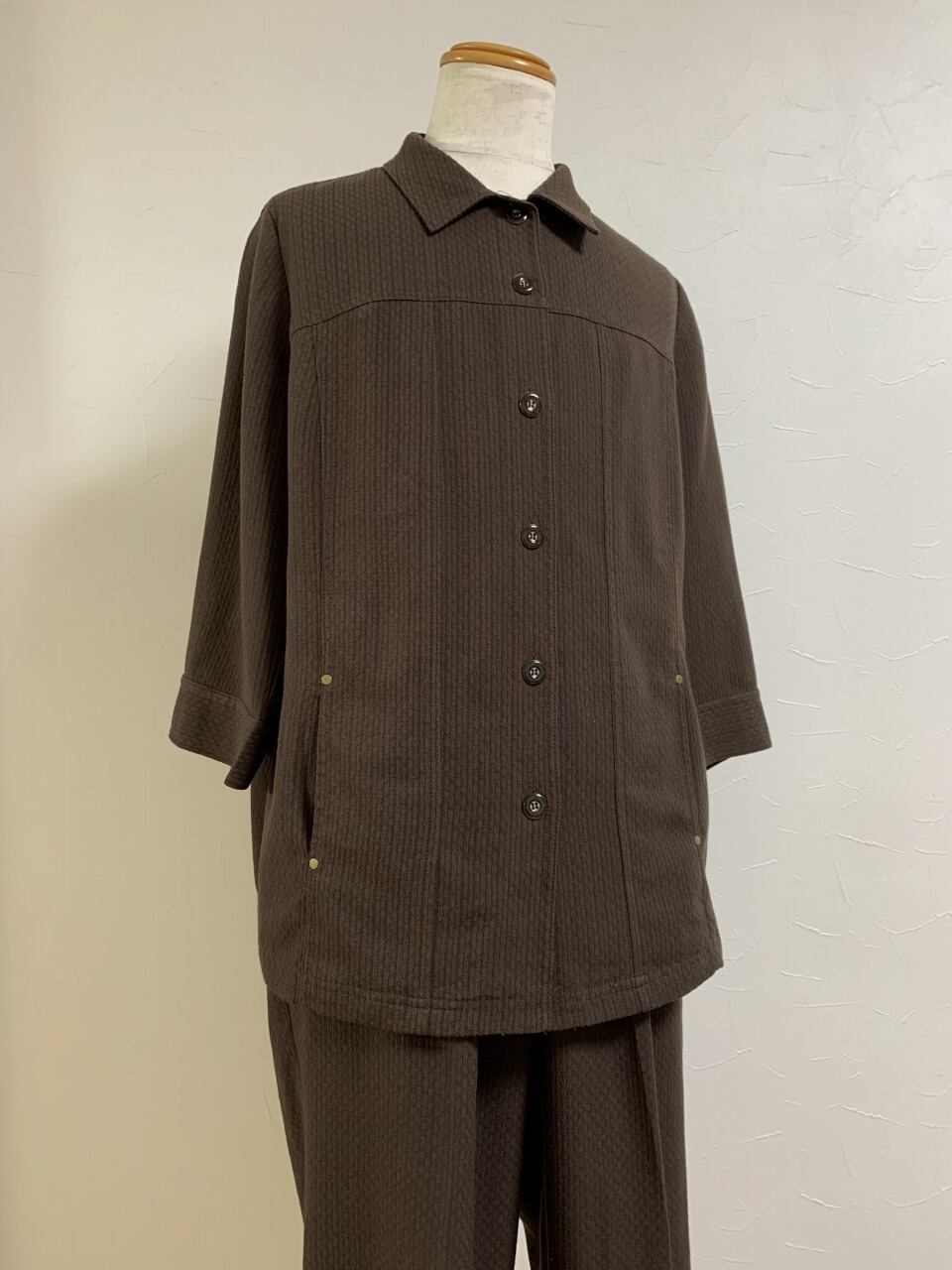 平置きサイズ:シャツジャケット 肩幅 44cm 身幅 65cm 着丈 77cm 袖丈 49cm パンツ ウエスト 29~48.5cm(ウエストにゴムが入っている為) 股下 52cm 股上 32.5cm