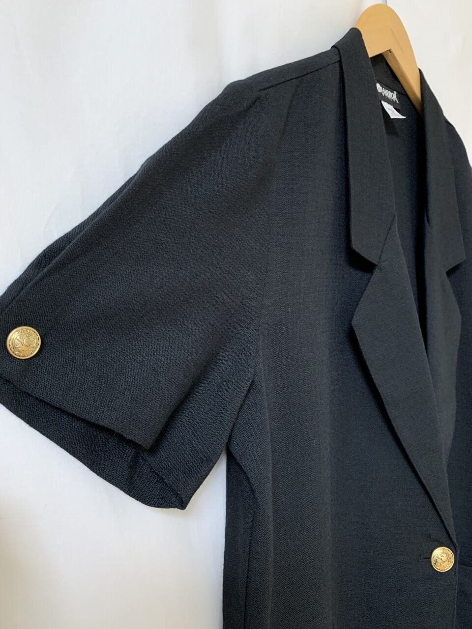 細かな装飾のゴールドのメタルボタンがアクセントに