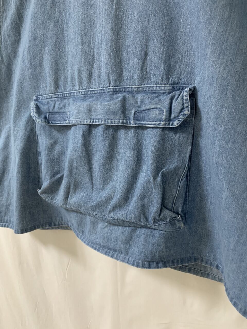 後ろ身頃の裾にも、フラップ付きのポケット
