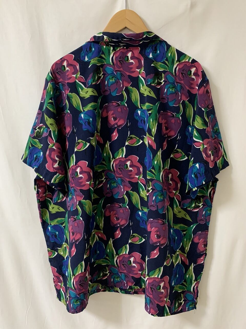 深いトーンのネイビーベースのシャツ全体に
