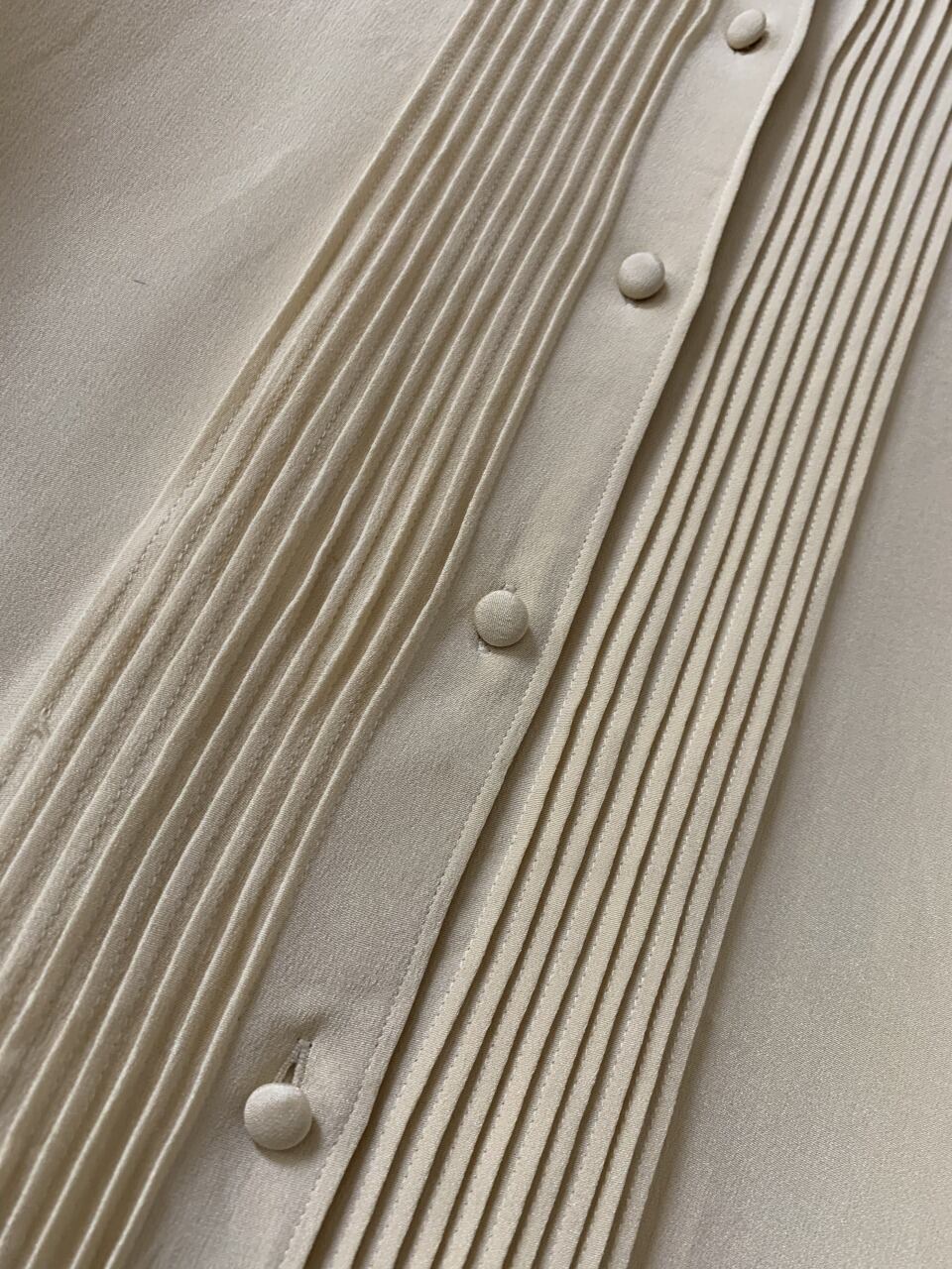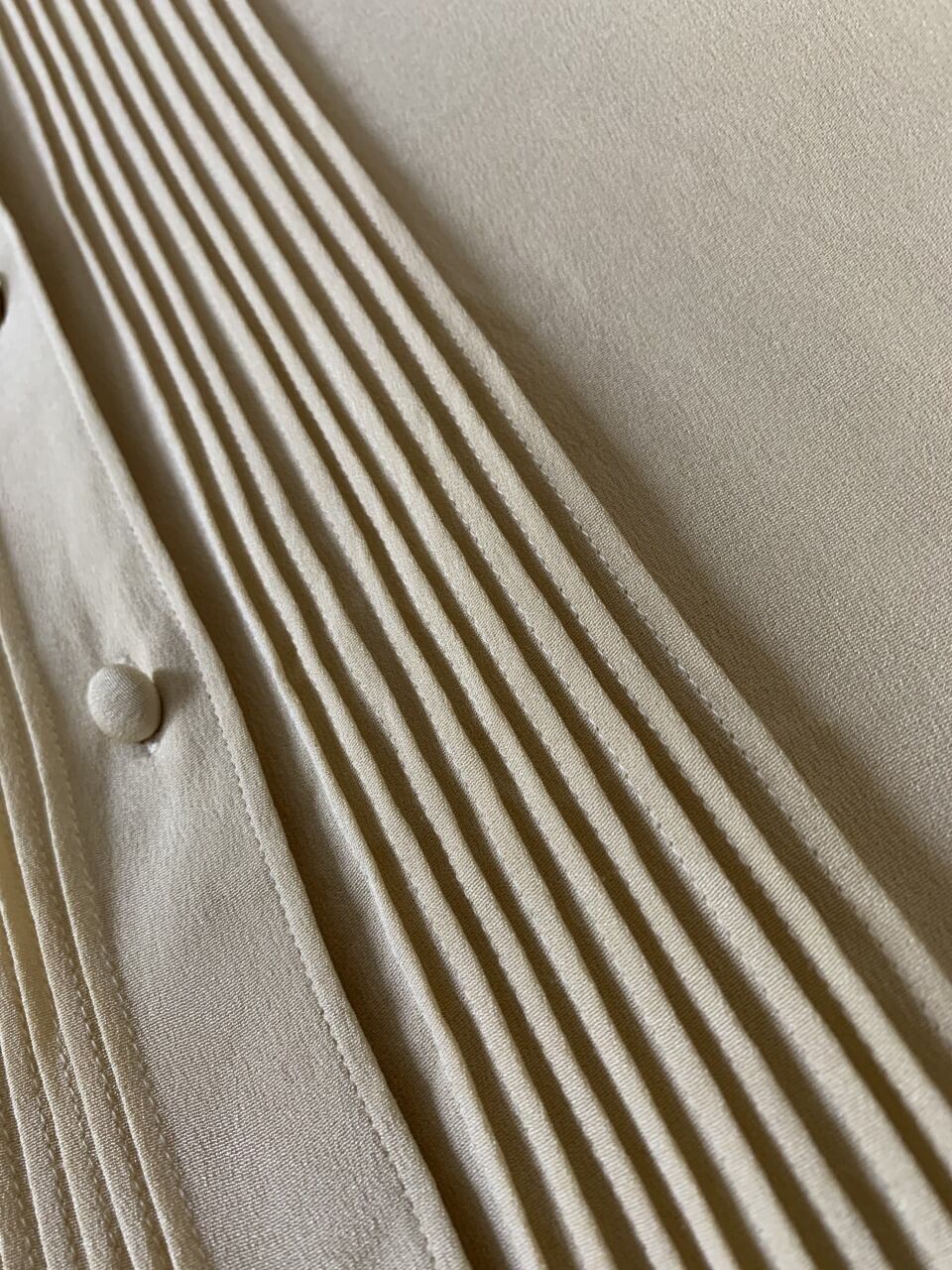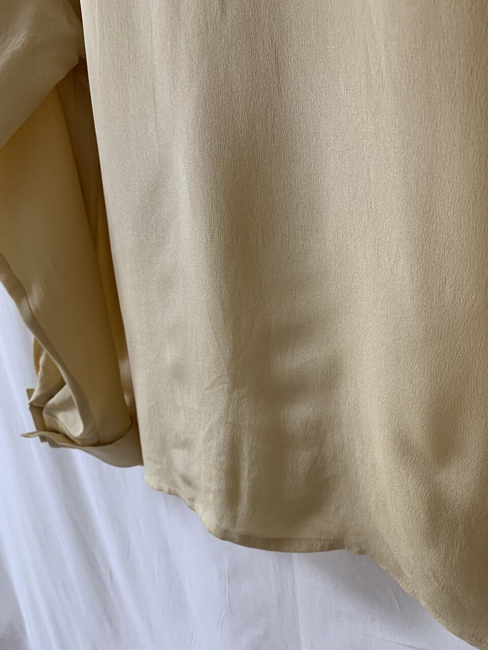 右袖と前身頃の左裾付近に小さな汚れ、後ろ身頃裾付近に織りキズがございますが、よく見ないと分からない程度の為、通常使用に問題はないかと思われます