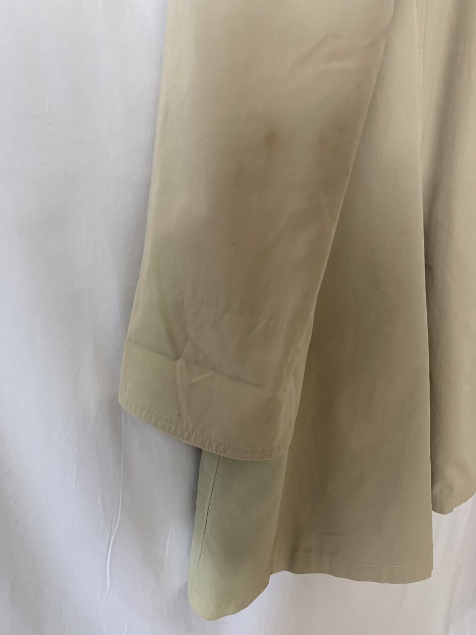 左袖に変色、右袖に汚れ、各所に小さなシミなどがございます