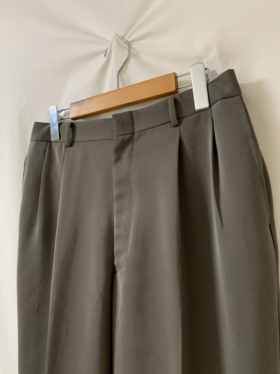 やや光沢感のあるアッシュグレーカラーのスラックス