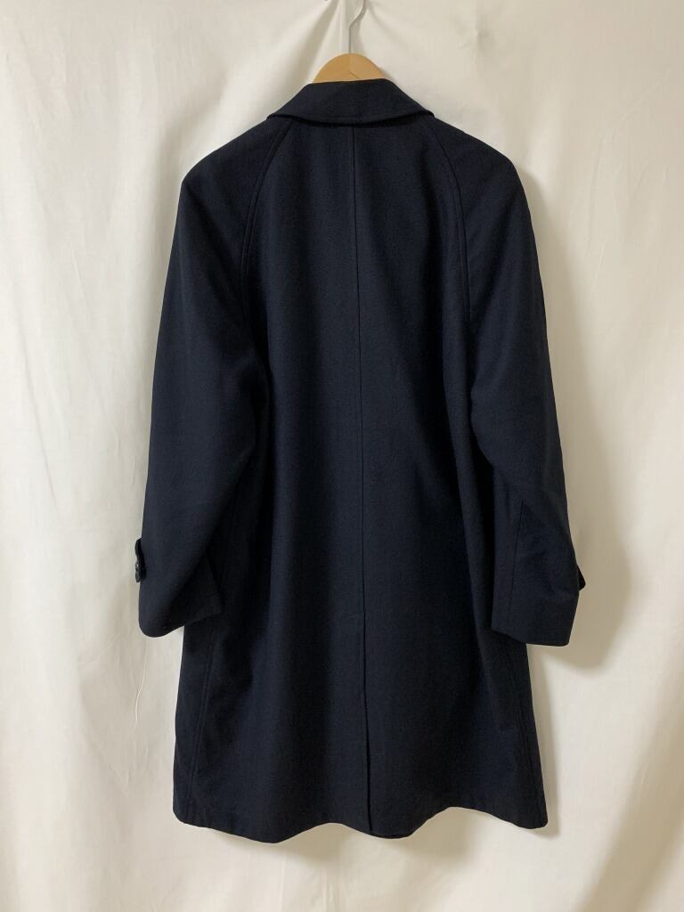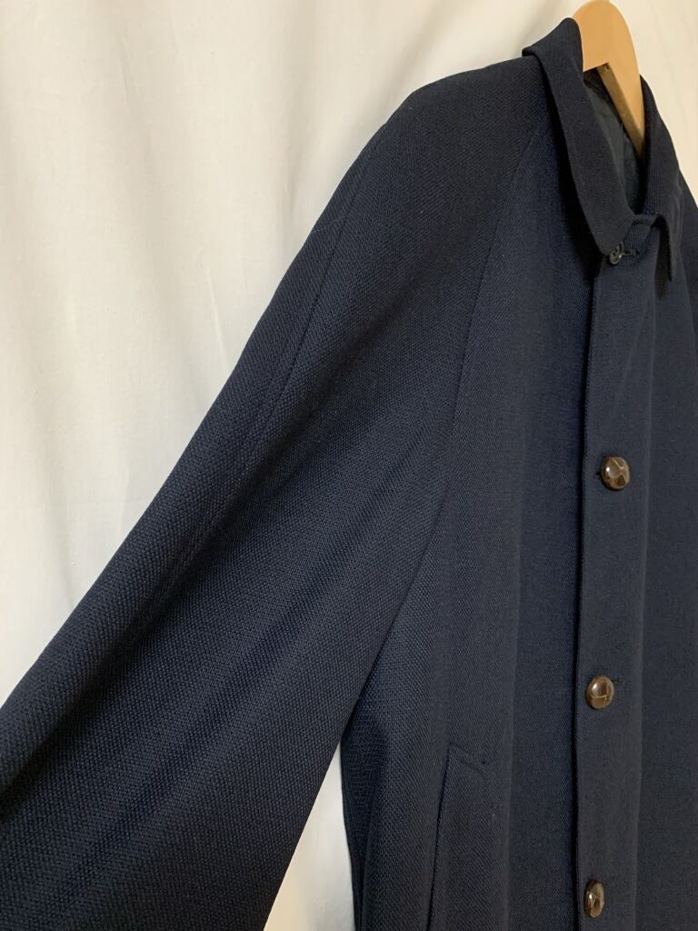 落ち着いたネイビーカラーのステンカラーコート