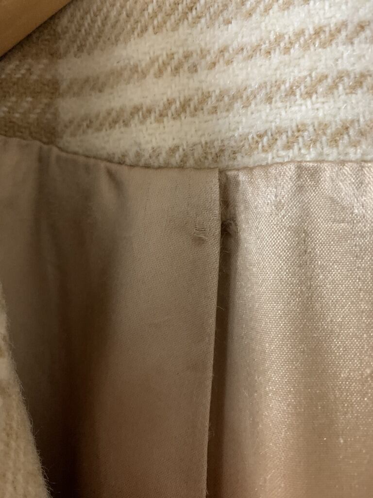 首裏の裏地部分に小さな汚れがございますが、よく見ないと分からないことと、着用時には見えなくなる為、通常使用に問題はないかと思われます