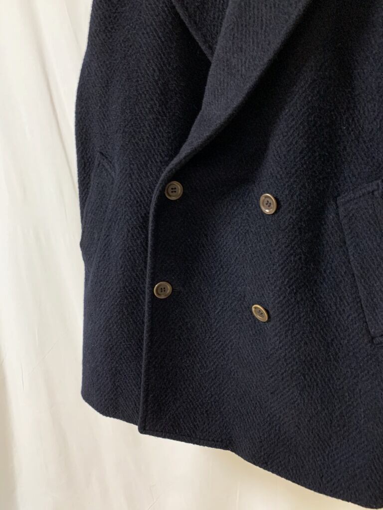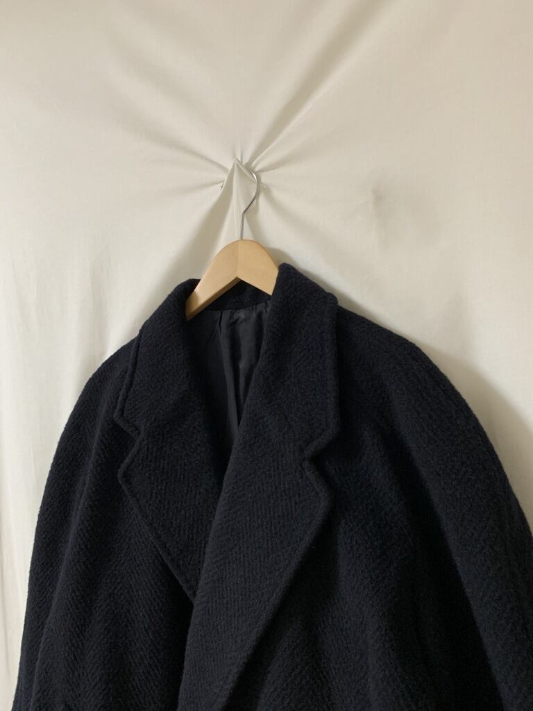 ブラックに近い、深いダークネイビーのコート