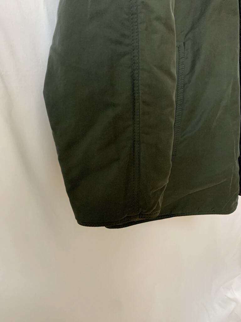 フードのドローコードに汚れ、ブラウン側の所々に毛抜けがございますが、よく見ないと分からない程度の為、通常使用に問題はないかと思われます