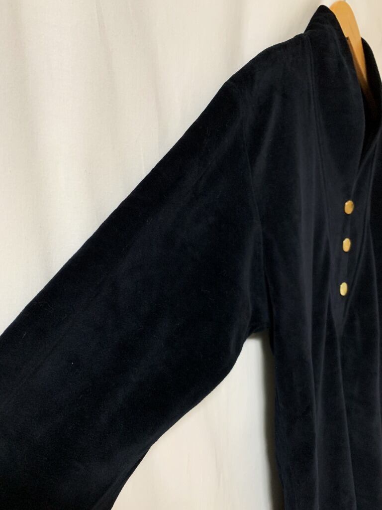 胸元のメタルボタンが良いアクセント