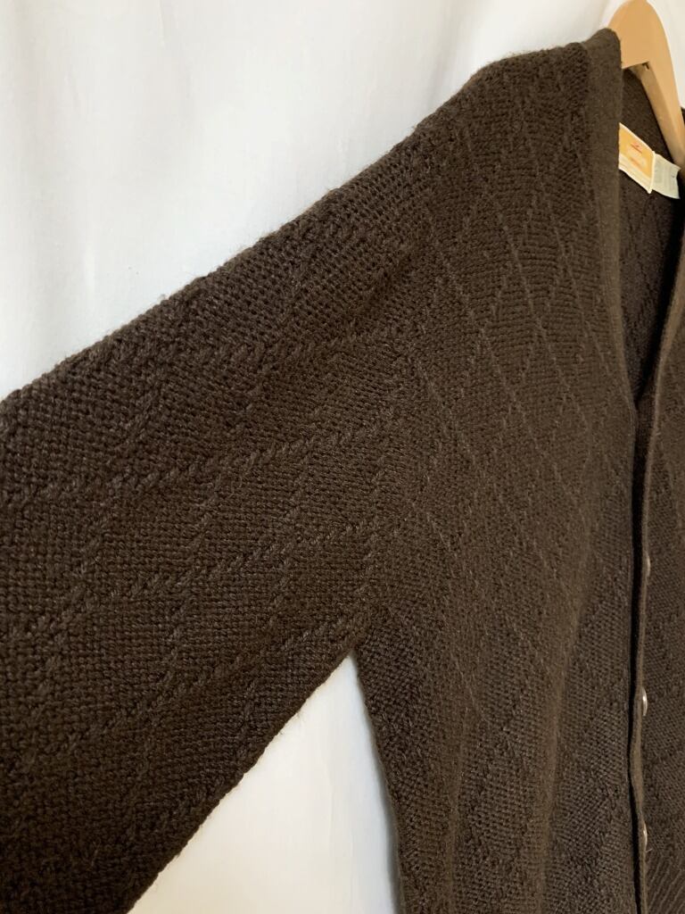 上品なダークブラウンカラーのカーディガン
