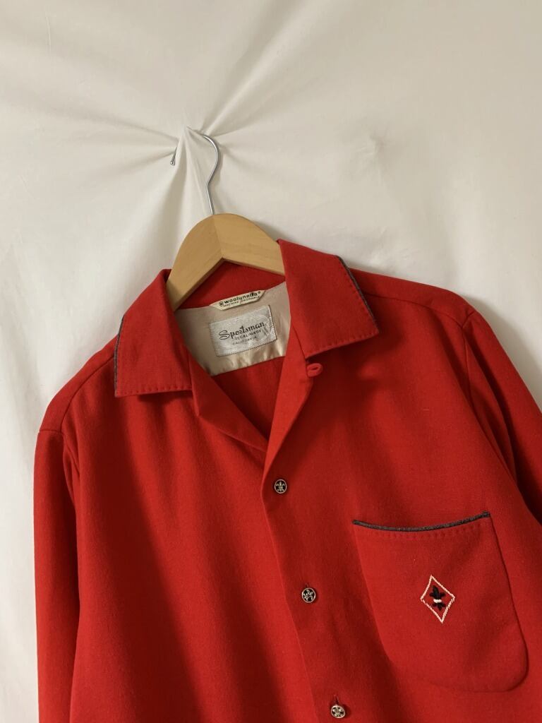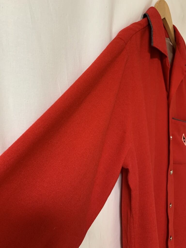 深みのあるカルミンレッドのシャツ