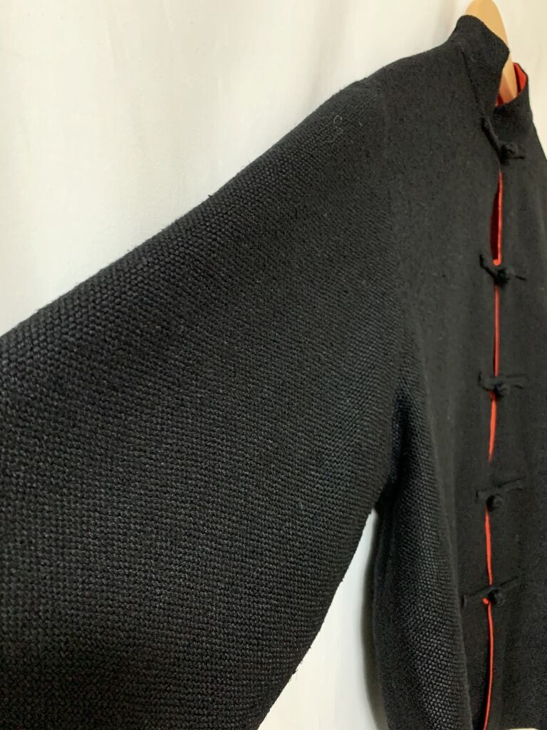 袖のアシンメトリーな織り柄の切り替えデザイン