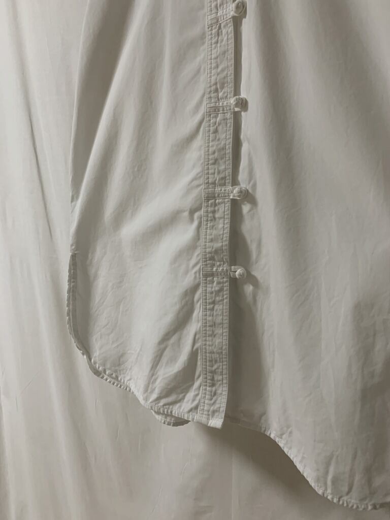 ホワイトカラーのノーカラーシャツ