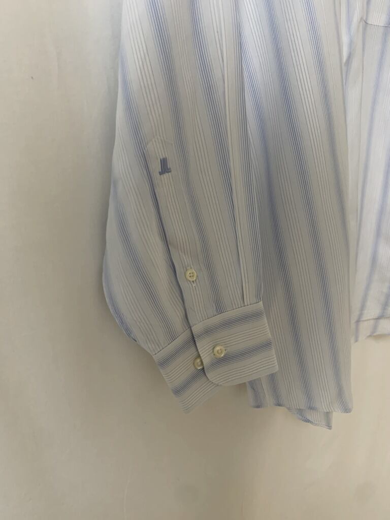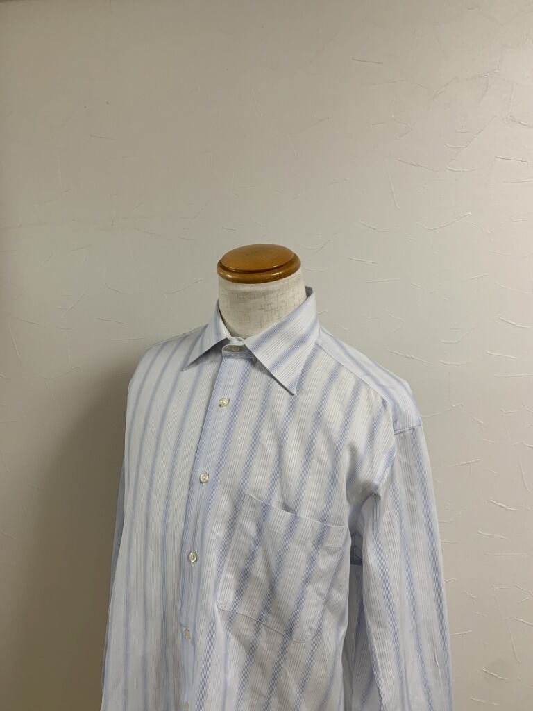 やや大きめの襟のデザインや袖のブランドロゴの刺繍