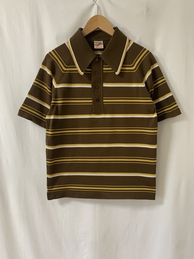 落ち着いたセピアブラウンベースのニットポロシャツ