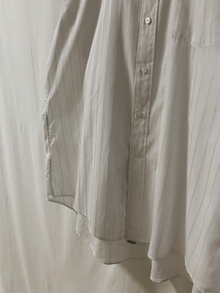 内側の品質タグにペン跡、前身ごろの裾付近に汚れがございますが、ペン跡は着用時には見えず、身頃の汚れはそこまで目立つものではない為、通常使用に問題はないかと思われます