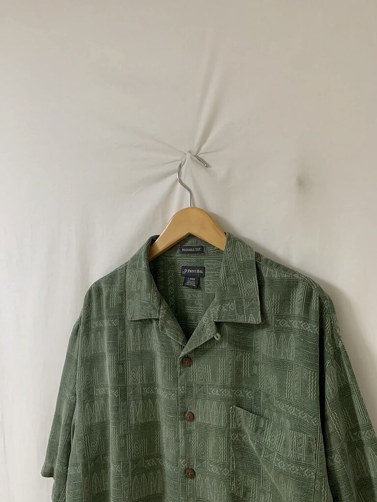 深みのあるアーモンドグリーンカラーのシルクファブリック