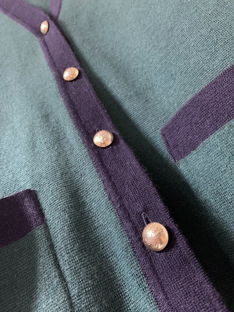 ブランドシンボルが刻まれた、立体感のあるメタルボタン