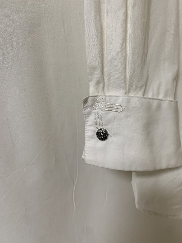 袖口のダブルカフス部分にも、細かな刺繍