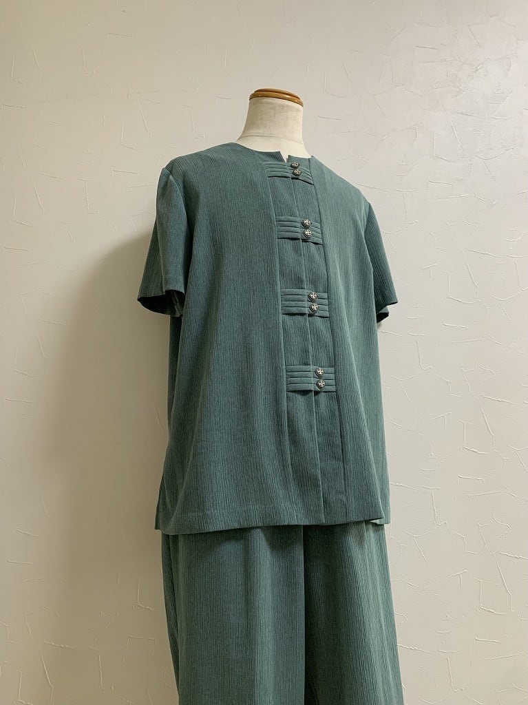 平置きサイズ:シャツジャケット 肩幅 44cm 身幅 63.5cm 着丈 77cm 袖丈 24.5cm パンツ ウエスト 31~56cm(ウエストにゴムが入っている為) 股下 69cm 股上 36cm