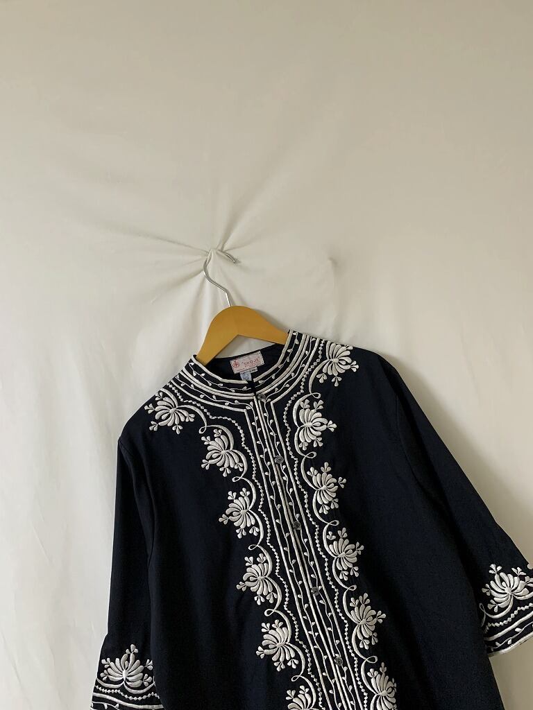 各所に施された、ホワイトカラーの刺繍デザイン