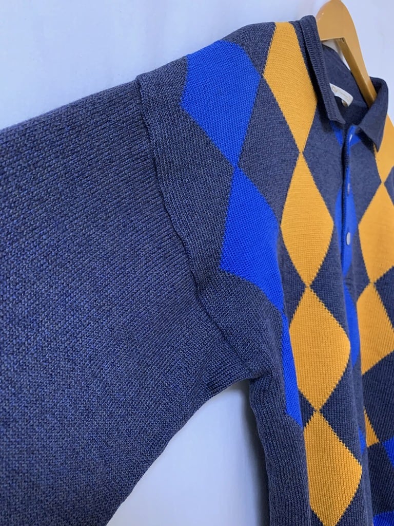 フロントのインクブルー×クロムイエローの編み柄