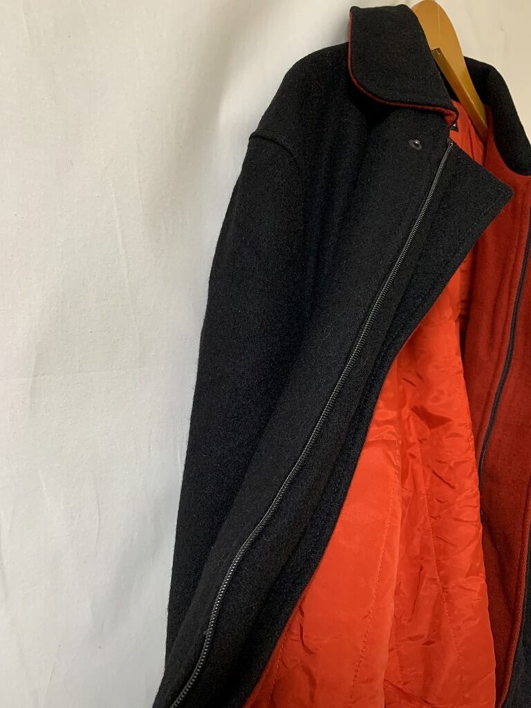 襟裏やフライフロント部分のカルミンレッドの切り替え