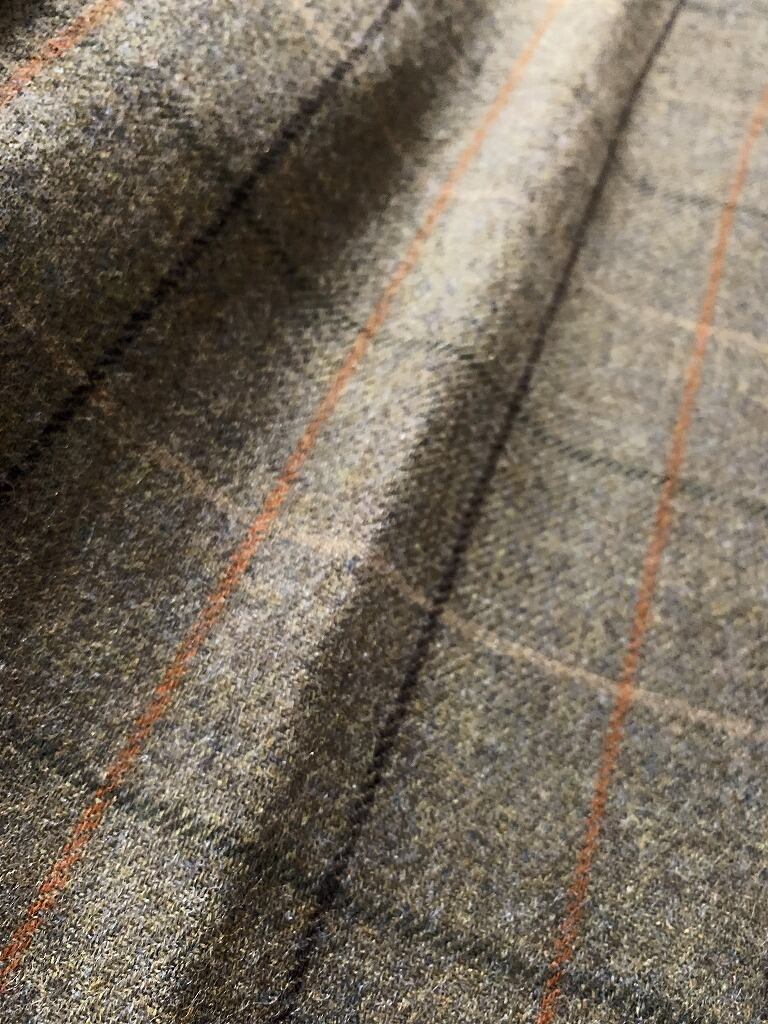 深みのあるオリーブドラブベースのウールファブリック
